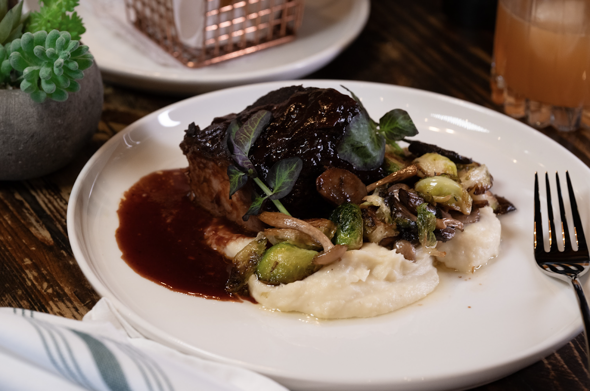 I give this place 5 stars! It was absolutely beautiful, the food was amazing, and they even have a dog menu for pups. I can't recommend it enough—it’s definitely a must-try spot. We went for dinner, and I had the French onion soup, which was delicious, along with the braised short rib. I would rate it a 10 out of 10! I will definitely be back with my dogs. You should check out the steak meal they offer for dogs too!
